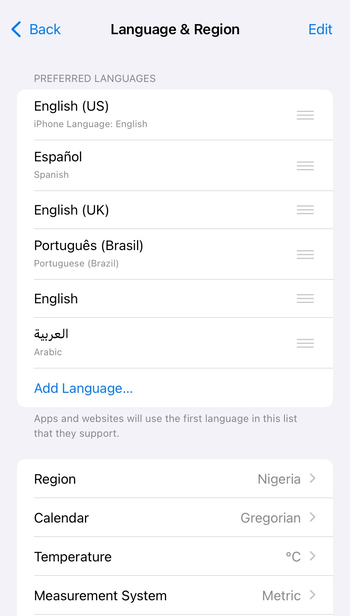 Nëse kërkimi nuk tregon Walmart, vendi juaj i Apple ID mund të mos e listojë aplikacionin. Kontrolloni Cilësimet > Të përgjithshme > Gjuha dhe rajoni për të konfirmuar cilësimet rajonale. Tani, kontrolloni nëse aplikacioni Walmart është i disponueshëm në vendin tuaj në faqen zyrtare të internetit.