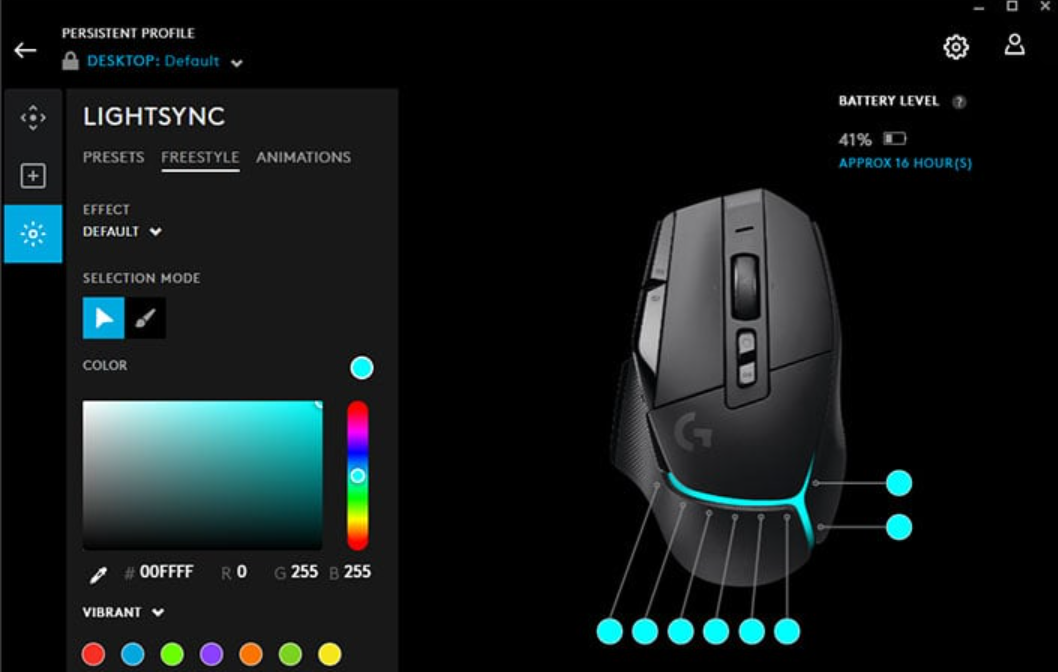 DPI kontrollon se sa shpejt lëviz kursori juaj në lidhje me lëvizjen e dorës. Në G Hub, hapni skedën DPI dhe konfiguroni disa faza (për shembull, 800, 1600, 3200). Ju mund të kaloni mes tyre menjëherë duke përdorur butonat DPI në krye të G502 — ideale për snajp ose modifikim fotografish.