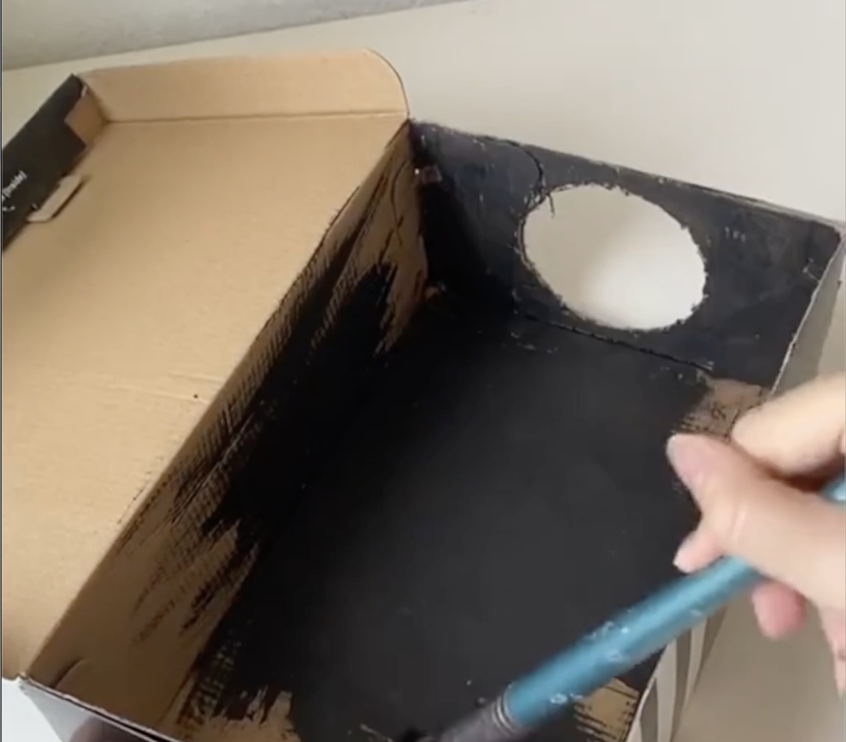 , parandaloni mbulimin e saj me ngjyrë të zezë nga brenda kutisë, duke e lyer letrën e zezë ose mbulimin e saj me dritë të zezë sipërfaqe. Ky hap nuk është i nevojshëm, por ndihmon për ta bërë imazhin më të qartë.