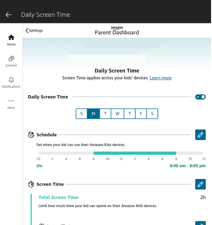 Një opsion tjetër është të instaloni aplikacionin e prindërve Amazon Kids në telefonin tuaj iOS ose Android dhe të identifikoheni me të njëjtën llogari Amazone që përdorni në tabletin Fire Amazone. Aplikacioni ju lejon të rishikoni aktivitetin, të miratoni përmbajtjen dhe të rregulloni kufijtë dhe sinkronizon ndryshimet në tablet në kohë reale.