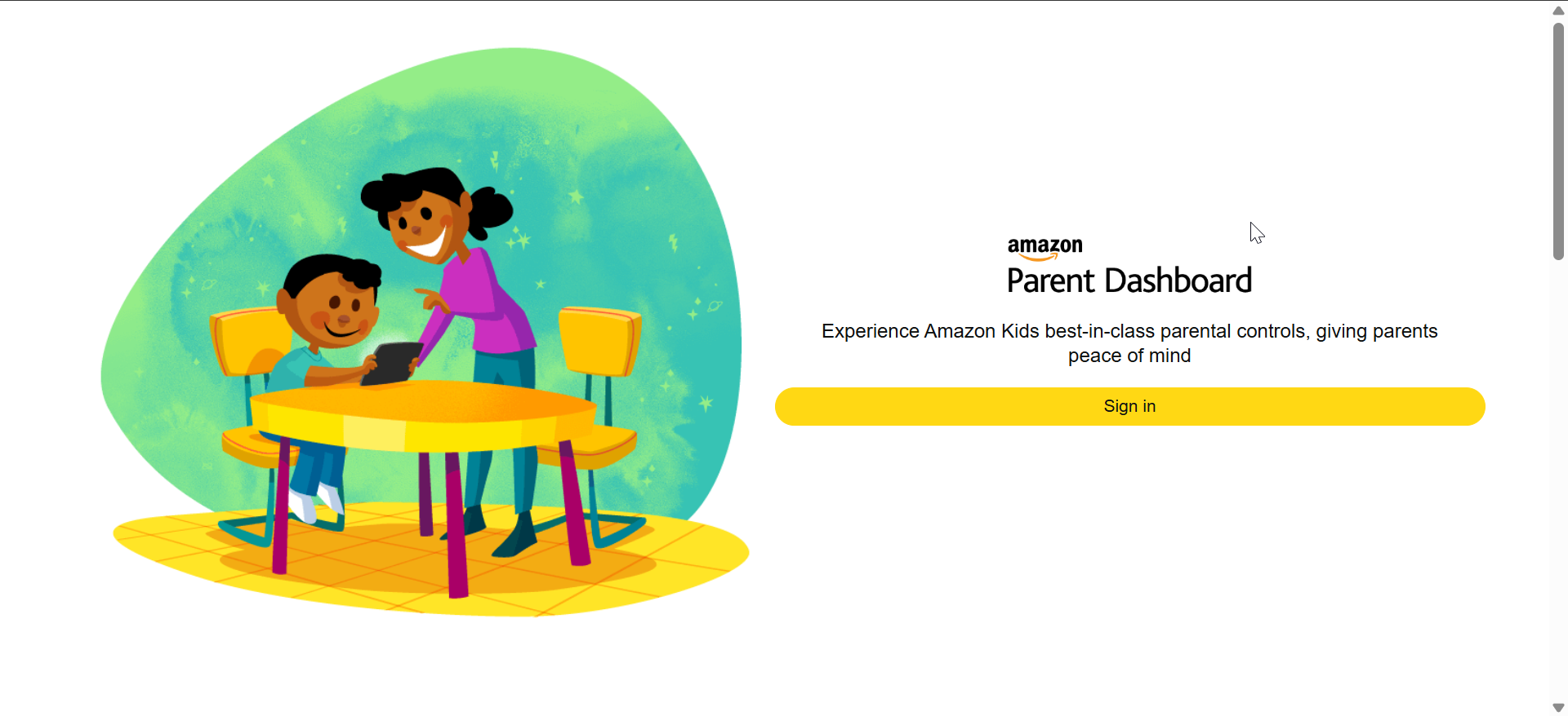 Hapni profilin e fëmijës Dash, Kids në profilin e prindërve, Kids, ose Kids në profilin e Prindërit. Tableti juaj Fire. Përdorni një shfletues uebi ose aplikacionin prindëror Amazon Kids kur dëshironi qasje në distancë te kontrollet. Menaxho kohën para ekranit, filtrat e përmbajtjes dhe raportet e aktivitetit nga një pamje e vetme e panelit. Përdorni qëllimet e të mësuarit, Cilësimet e Shpejta dhe profilet e sinkronizuara për të menaxhuar në mënyrë më efikase Amazon Kids në të gjitha Tabletat Fire.