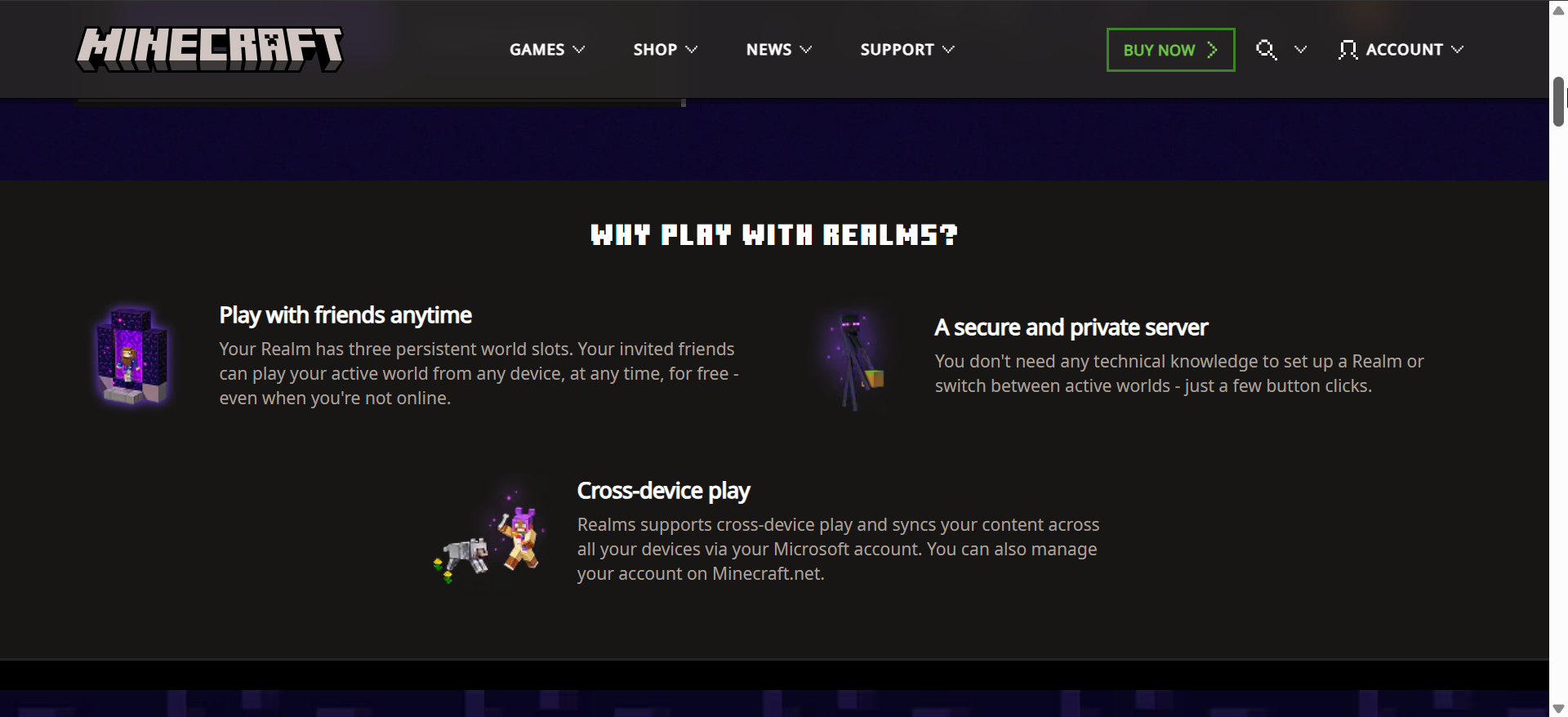 Duhet të zotëroni Minecraft Bedrock Edition ose Java përpara se të abonoheni. Shërbimi Realms nuk zëvendëson blerjen e lojës. Kjo kursen konfuzionin për lojtarët e rinj që shikojnë në ekranin e abonimit.