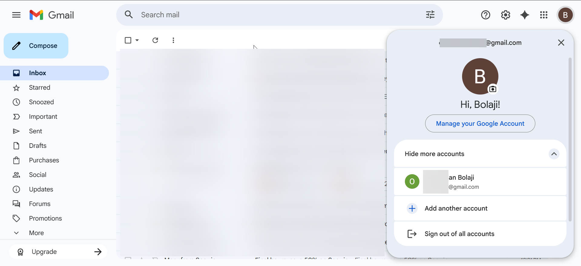Webmail tregon gjithmonë adresën tuaj të plotë sapo të identifikoheni. Kjo ju jep një konfirmim të menjëhershëm të llogarisë që po përdorni. klikoni foton e profilit tuaj. Ju e shihni adresën tuaj të plotë të emailit të Google nën emrin tuaj.