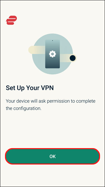 Kliko”OK”për të pranuar kërkesën për lidhje të ExpressVPN.Për t’u lidhur me një vendndodhje serveri, klikoni në butonin e energjisë.