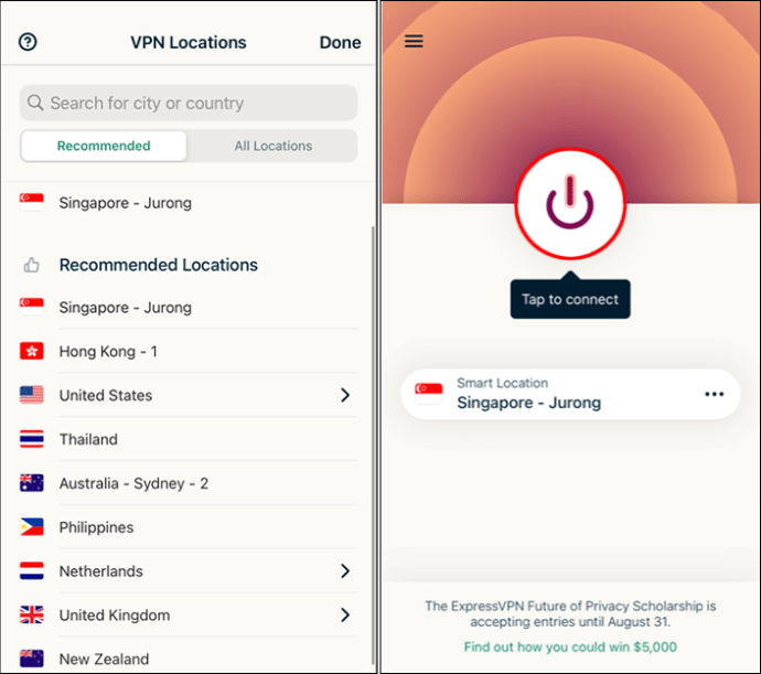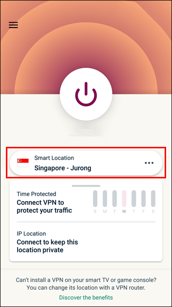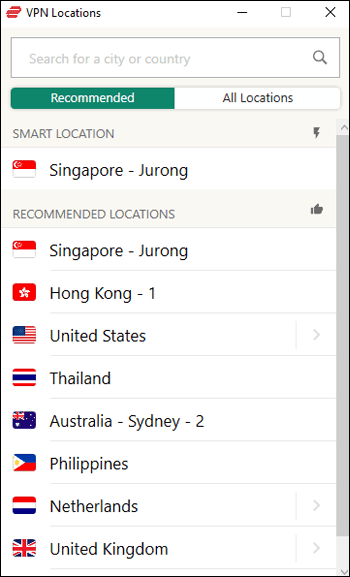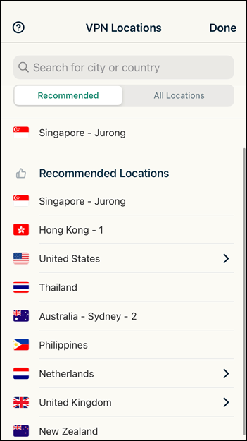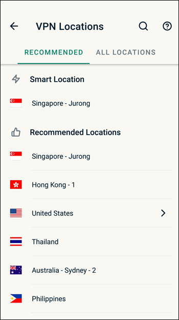 Nëse doni të zgjidhni një vendndodhje specifike, trokitni lehtë mbi”Vendndodhja inteligjente”për të shfaqur një listë të të gjithëve vendet e disponueshme të serverëve.