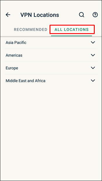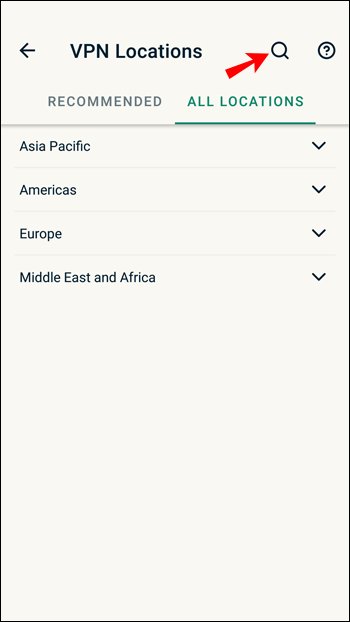 Për të zgjedhur një server të ndryshëm nga ai që shfaqet si”Vendndodhja inteligjente”, kliko me tre pika ikona e menysë në të djathtë.