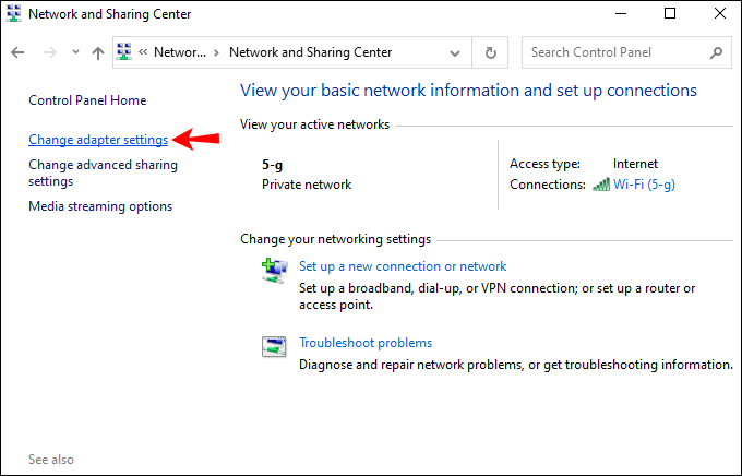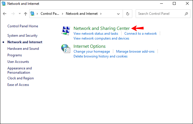 Nga menyja e majtë, klikoni”Qendra e Rrjetit dhe Ndarjes.”