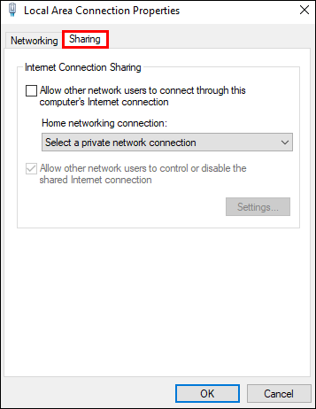 Shiko kutinë,”Lejo përdoruesit e tjerë të rrjetit të lidhen nëpërmjet lidhjes së internetit të këtij kompjuteri.”