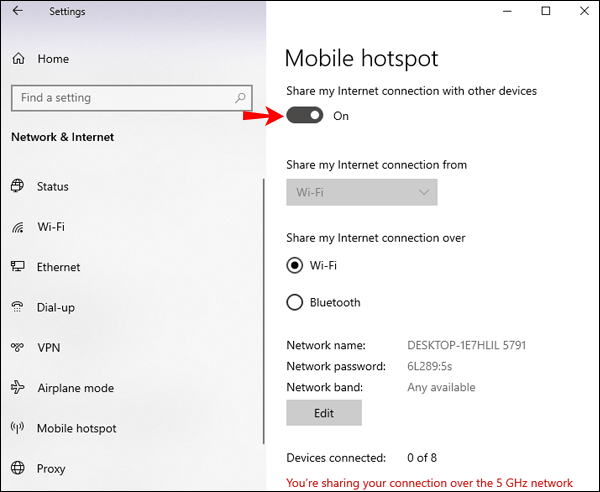 Nga kompjuteri juaj, nëpërmjet”Rrjetit dhe Internetit”, aktivizoni pikën e qasjes celulare.