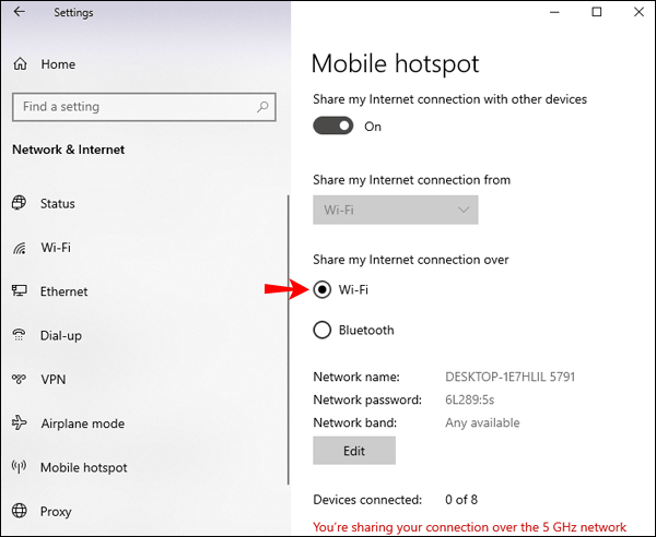 Nën opsionin”Ndani lidhjen time të internetit”, zgjidhni Wi-Fi.