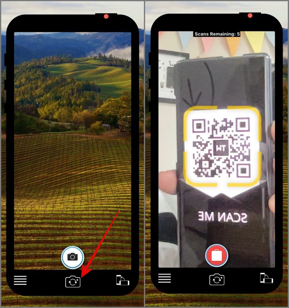 Å andra sidan , om du vill skanna QR-koden från din Macs webbkamera kan du bara klicka på ikonen Kamera (med två cirkulära pilar) och sedan placera QR-koden inuti telefonramen.