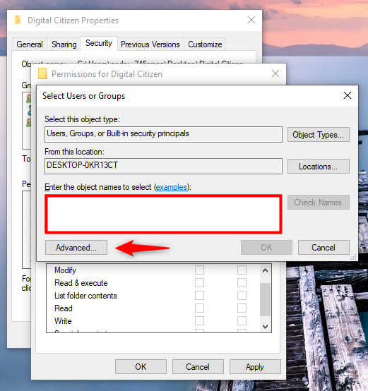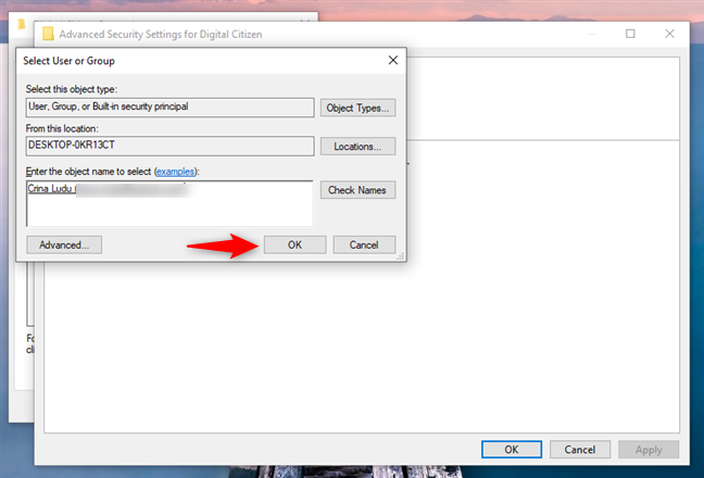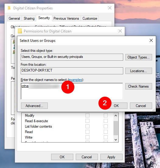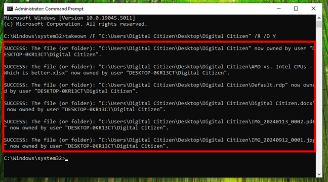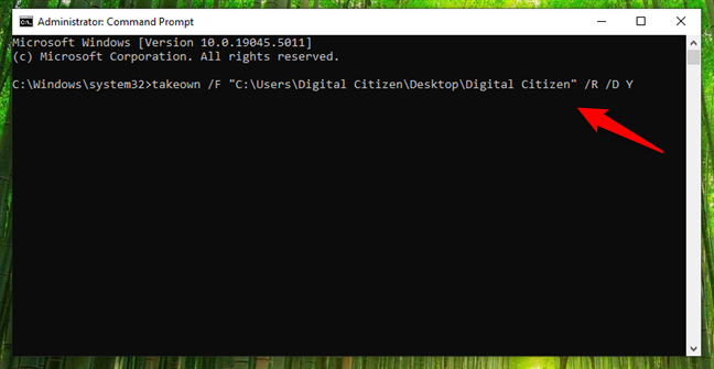 takeown/F “C:\Users\Digital Citizen\ Desktop\Digital Citizen”/R/D Y