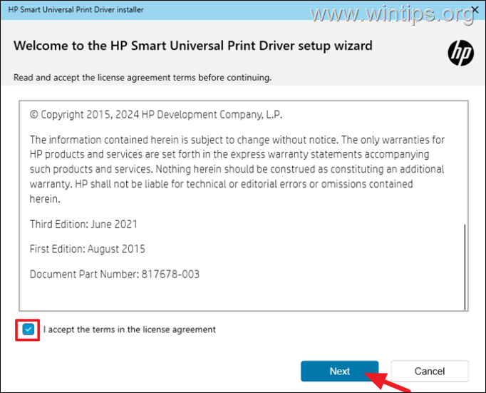 metod 3. installera skrivaren manuellt med hjälp av”lägg till skrivaren wizard”Method-1 above to download the HP Smart Universal Print Driver (steps 1-3), and after unzipping the download file (step-4), close the HP driver installation wizard (step-5).