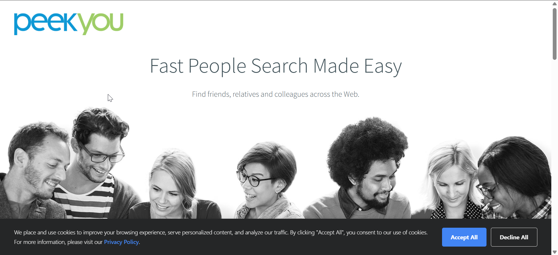 PeekYou är specialiserat på att hitta någons fotavtryck online. Den skannar profiler i sociala medier, bloggar, nyhetsomnämnanden och offentliga webbsidor för att skapa en digital identitetskarta baserad på namn och användarnamn. Om du försöker återansluta till någon online eller bekräfta att ett användarnamn är knutet till en riktig människa är PeekYou särskilt användbart.