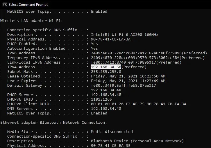 Klicka först på ikonen”Nätverk“i aktivitetsfältet för att öppna nätverksmenyn. Klicka här på den aktiva nätverksanslutningen. I mitt fall är jag ansluten till nätverket”Asura 5G”. Så jag klickade på den. Klicka sedan på länken”Egenskaper“. Obs: Du kan också öppna sidan genom att gå till sidan”Inställningar”>”Nätverk och Internet”>”Status”och sedan klicka på knappen”Egenskaper”. Bläddra nedåt på egenskapssidan tills du hittar avsnittet”Egenskaper.“. Du kommer att se din nuvarande IP-adress bredvid rubriken”IPv4-adress“. Om du är ansluten till ett IPv6-nätverk hittar du dess adress bredvid rubriken”IPv6-adress“. Du kan även kopiera IP-adressen genom att markera den och trycka på”Ctrl + C”. Bra att hitta din IP-adress i Windows 11 Du kan använda kommandot ipconfig för att få IP-adressen i Windows 10. Så här gör du. Öppna Start-menyn genom att trycka på”Windows-tangenten”. Sök efter”Kommandotolken”ype och klicka på”ype”.”ipconfig/all“och tryck Gå in. Hitta nätverksadaptern du använder. IP-adressen kommer att finnas bredvid rubriken”IPv4-adress“. Om det behövs kan du välja IP-adressen och kopiera den genom att trycka på”Ctrl + C”.
