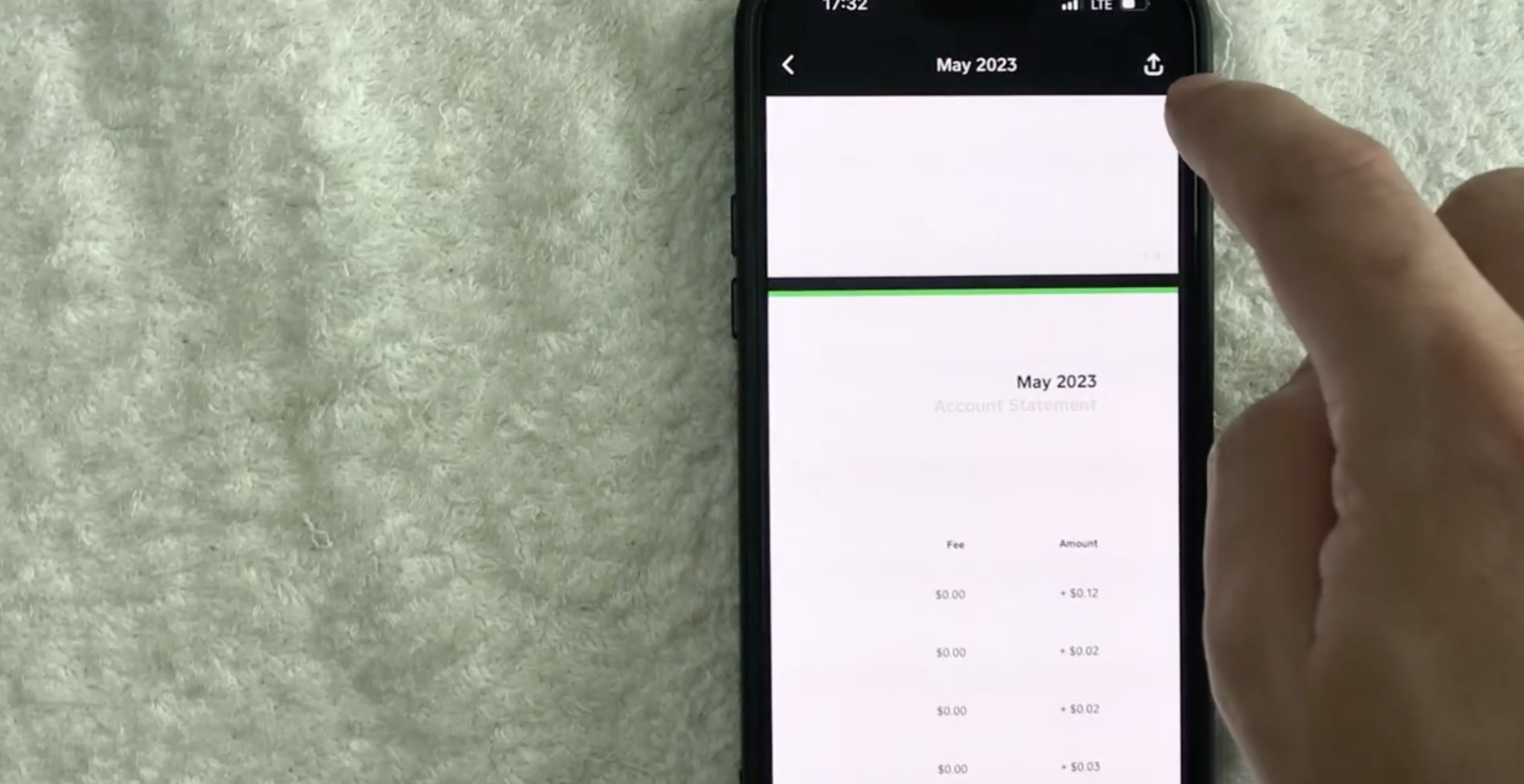 Välj tidsperiod (t.ex. månadsvis eller kvartalsvis) för uttalandet. Kontanter genererar ett kontoutdrag med alla dina transaktioner. Ladda ner den genom att trycka på ikonen Ladda ner uppe till höger.