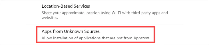 Du måste tillåta sidladdning eftersom Fire OS blockerar appinstallationer från tredje part som standard.