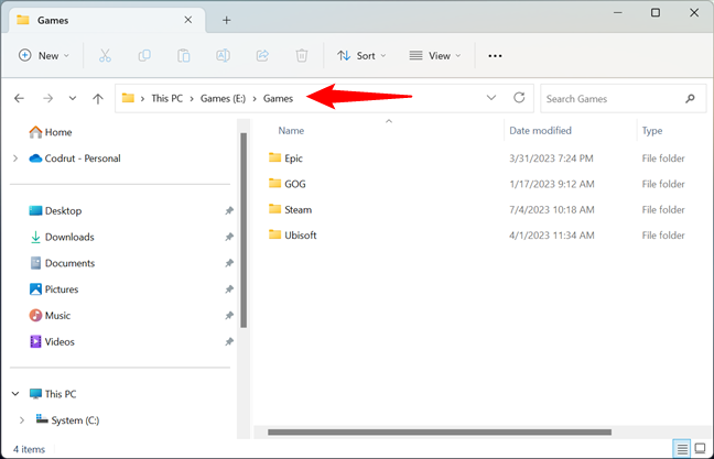 ก่อนอื่น ให้เปิด File Explorer และไปที่โฟลเดอร์ที่คุณต้องการส่งออกแผนผังไดเรกทอรี เพื่อแสดงตัวอย่างกระบวนการ ฉัน จะใช้โฟลเดอร์เกมของฉัน ซึ่งอยู่ใน “E:\Games”