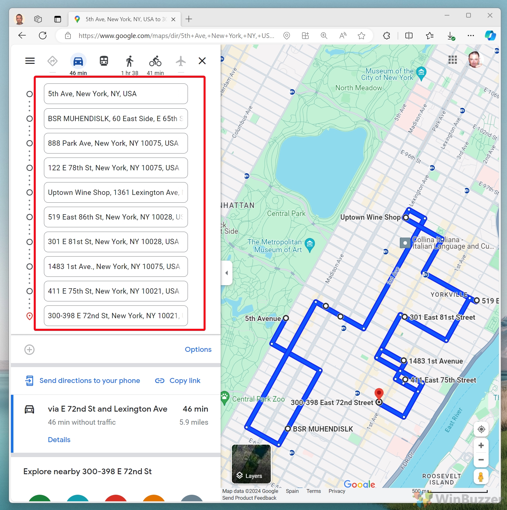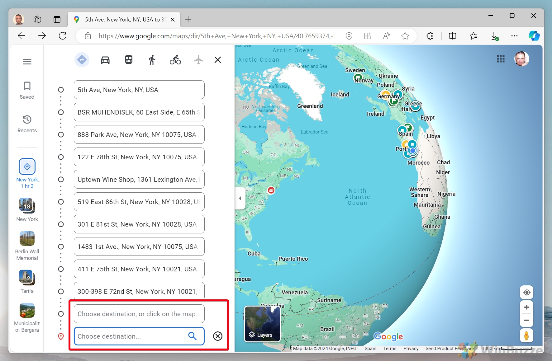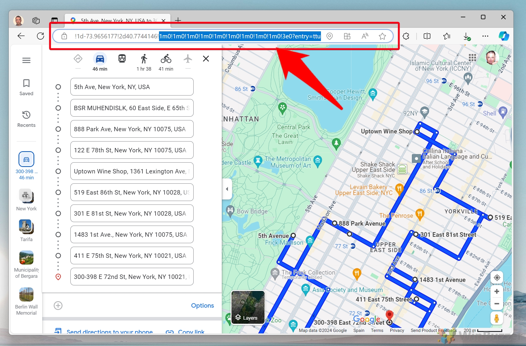วาง URL ลงในแถบเบราว์เซอร์ของคุณแล้วกด’Enter’ตอนนี้คุณควรเห็นจุดหมายปลายทางมากกว่า 10 แห่งบน Google Maps ในแถบด้านข้าง แต่ตอนนี้เมื่อคุณทราบวิธีเพิ่มสถานที่หลายแห่งบนเดสก์ท็อป Google Maps แล้ว คุณจะต้องการทราบวิธีนำสถานที่เหล่านั้นมาไว้ในมือถือของคุณ