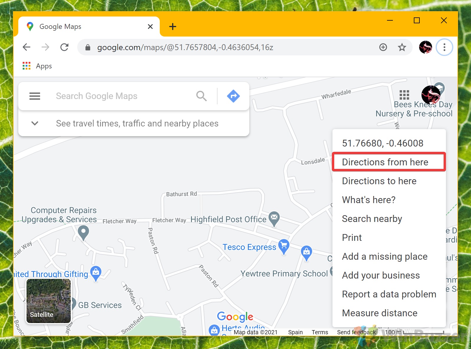 เปิดแท็บอื่นด้วย Google Maps และค้นหาจุดเริ่มต้น คลิกขวาที่หมุดสีแดง จากนั้นคลิกพิกัดเพื่อคัดลอกไปยังคลิปบอร์ดของคุณ