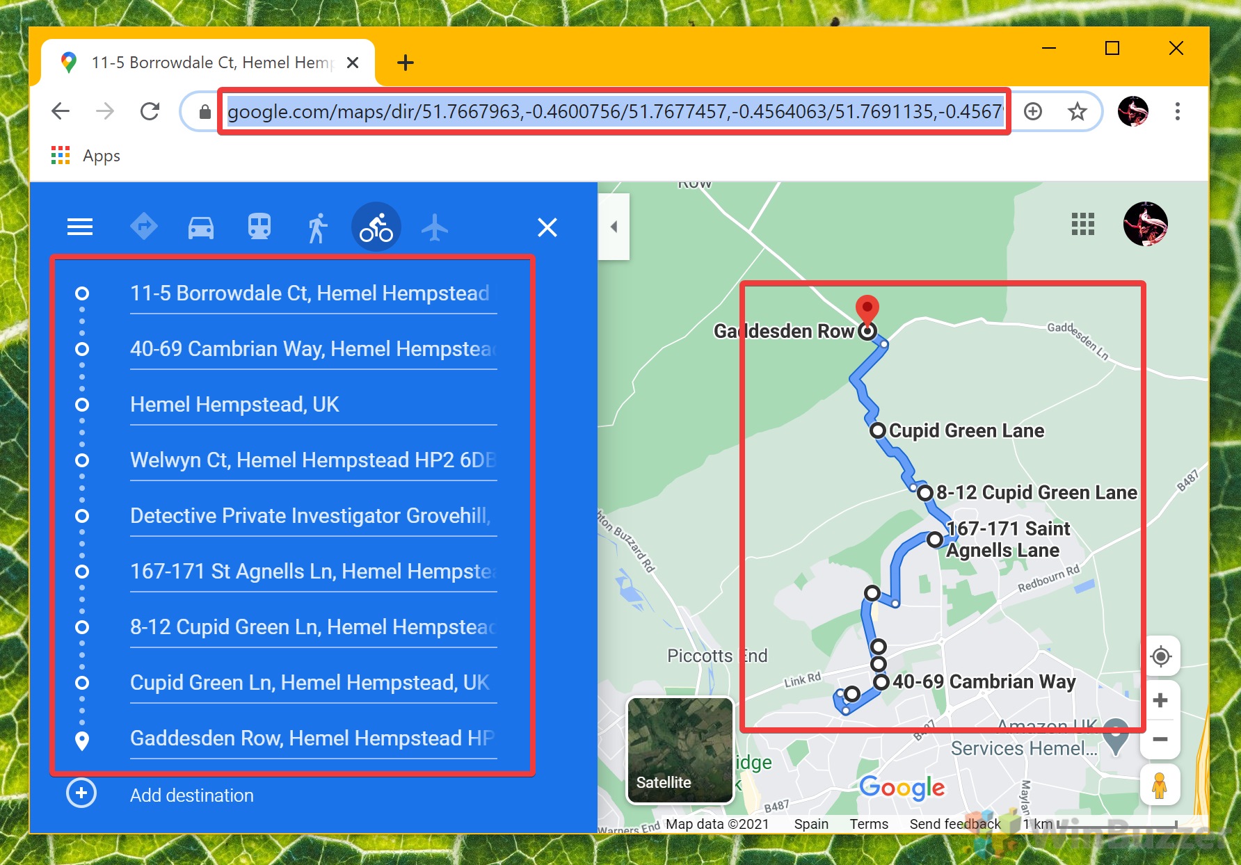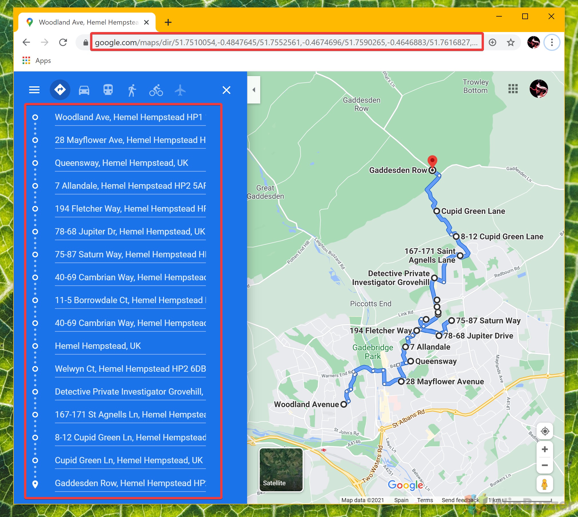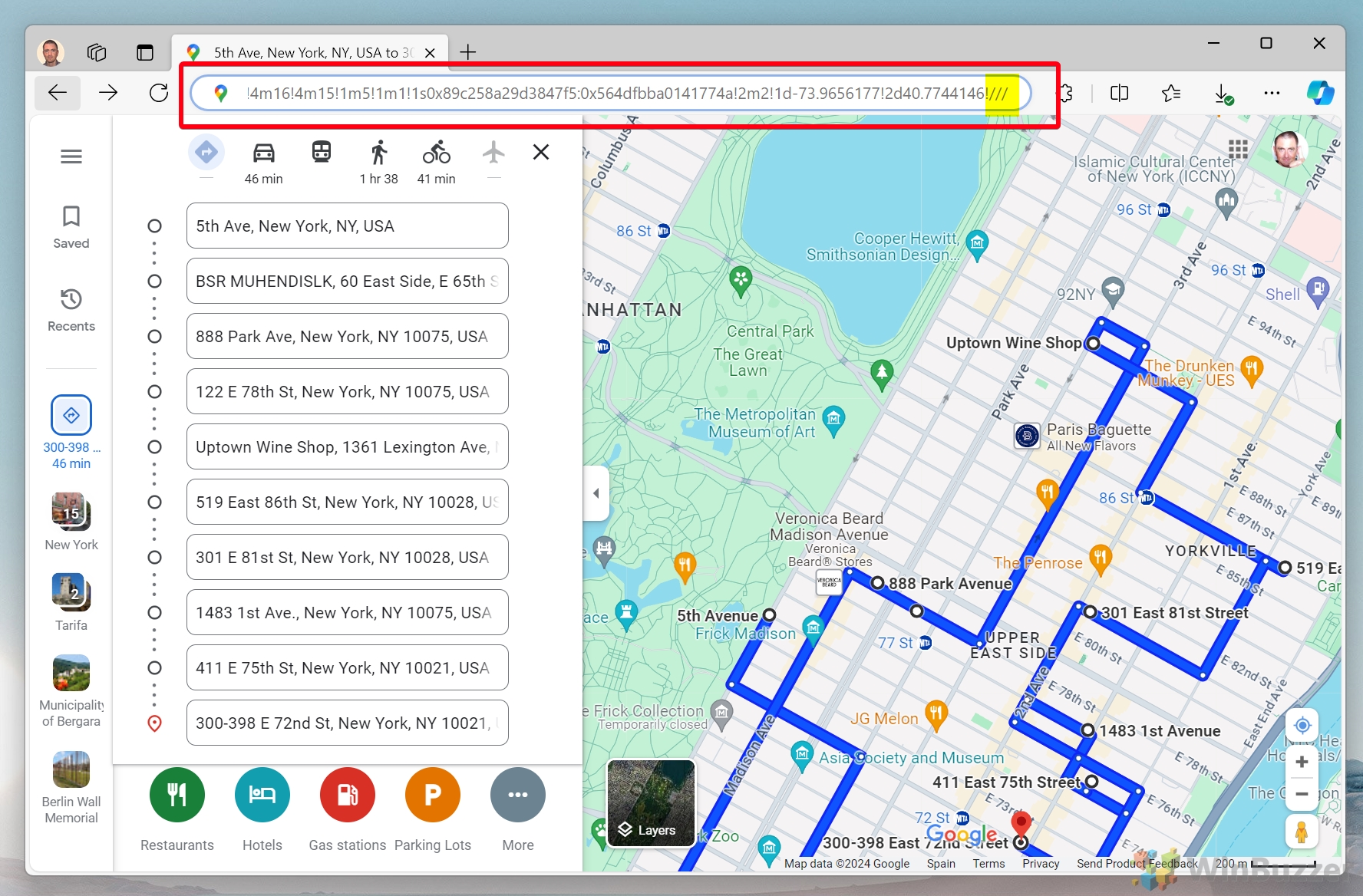 สิ่งนี้ซับซ้อนมากขึ้น วิธีการใช้การแก้ไขทุกจุดใน URL เราปล่อยไว้ที่นี่เนื่องจากจะแสดงให้เห็นอย่างชัดเจนว่า URL เส้นทางของ Google Maps ทำงานอย่างไรและสามารถจัดการได้