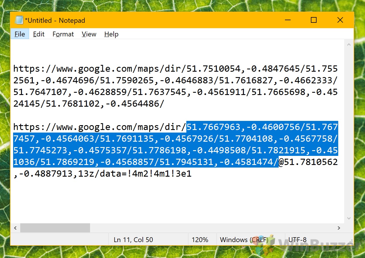 วาง URL ในเอกสาร Notepad ของคุณเพื่อแก้ไข
