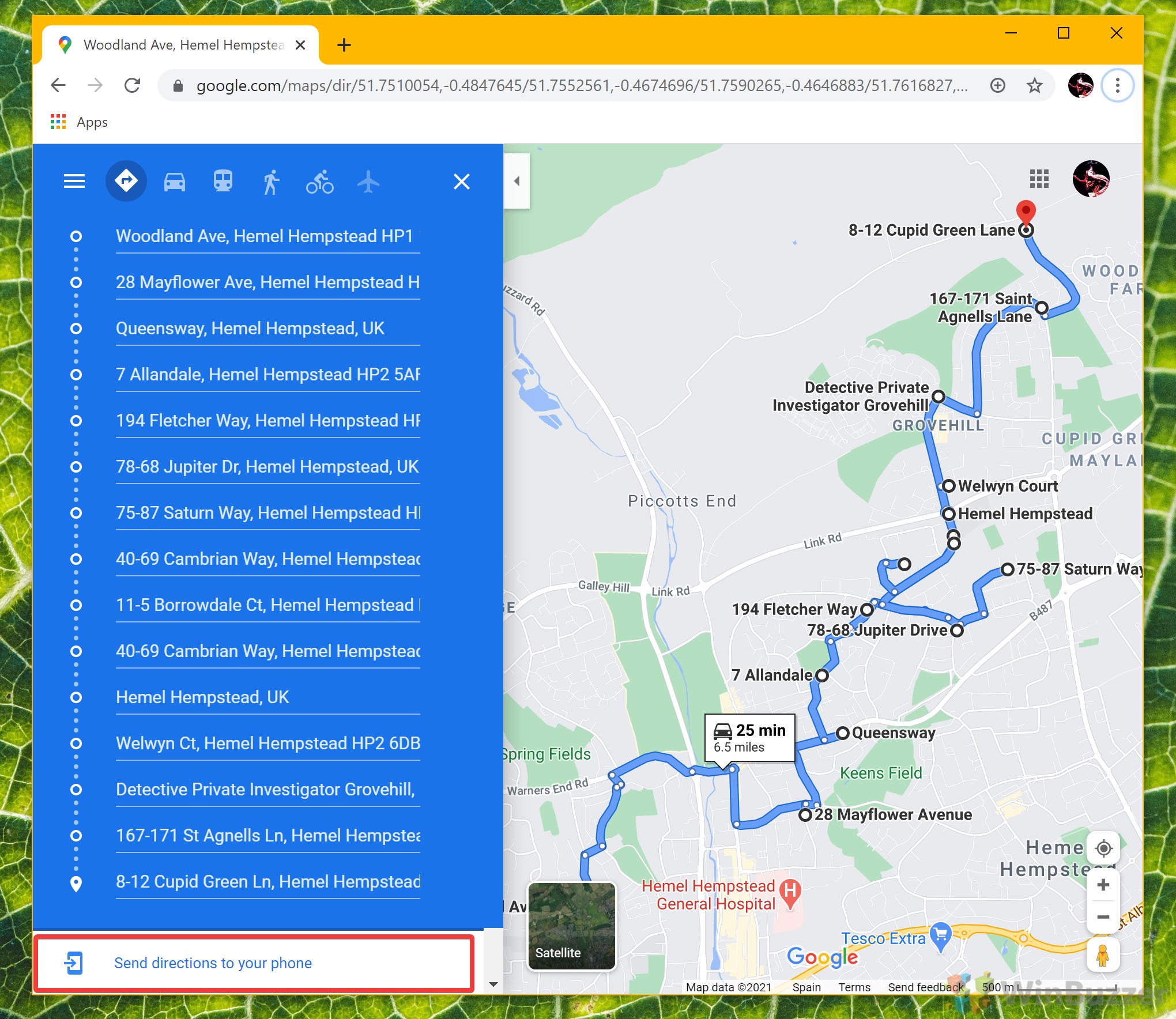 กดปุ่ม’ส่งเส้นทางไปยังโทรศัพท์ของคุณ’ในแถบด้านข้าง