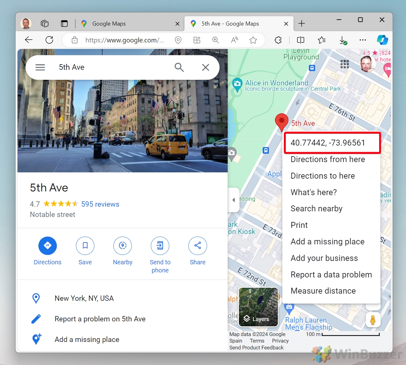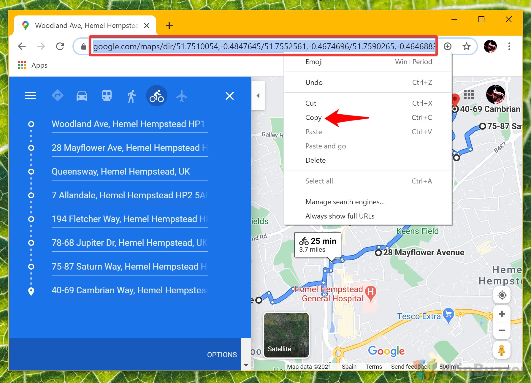 หากแถบ URL ของคุณแสดงชื่อสถานที่แทนพิกัด ให้มุ่งหน้าไปยังสถานที่แต่ละแห่ง ลบออก และคลิกขวาเพื่อเพิ่มลงในรายการแทนที่จะพิมพ์ชื่อสถานที่