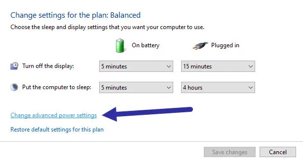ขั้นตอนที่ 4: ตัวเลือกที่เรากำลังมองหาคือ ถือเป็นการตั้งค่าขั้นสูง ดังนั้นเราจึงต้องเปิดการตั้งค่าแผนพลังงานขั้นสูง คลิกที่ลิงก์ “เปลี่ยนการตั้งค่าพลังงานขั้นสูง” ที่ปรากฏด้านล่าง