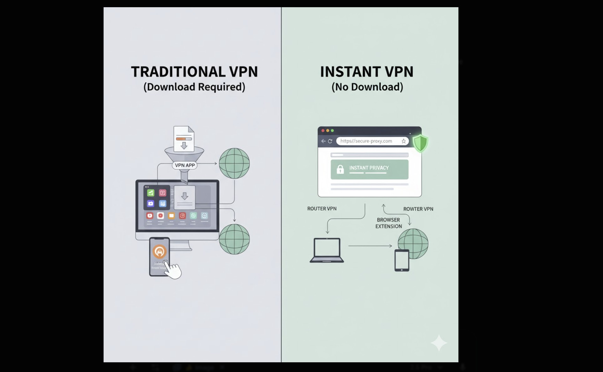 หาก “ไม่ดาวน์โหลด” เป็นข้อจำกัดของคุณ คุณยังคงมีทางเลือกที่แท้จริง เพื่อการป้องกันที่รวดเร็ว เครือข่ายที่ปลอดภัยของเบราว์เซอร์จึงเป็นสวิตช์ที่ง่ายที่สุด เพื่อความปลอดภัยของอุปกรณ์เต็มรูปแบบโดยไม่ต้องใช้แอป VPN ให้สร้างโปรไฟล์ IKEv2/L2TP ดั้งเดิมหรือย้ายอุโมงค์ไปยังเราเตอร์ของคุณ สำหรับการใช้งานสตรีมมิ่งอย่างเดียว Smart DNS จะรักษาความเร็วสูงไว้ แต่จำไว้ว่านี่ไม่ใช่เทคโนโลยีความเป็นส่วนตัว เลือกเครื่องมือที่เบาที่สุดที่ครอบคลุมความเสี่ยงและแพลตฟอร์มที่แท้จริงของคุณ
