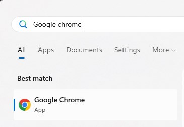 ขั้นแรก เราต้องเปิดเบราว์เซอร์ Chrome หากเปิดอยู่แล้ว ให้ข้ามขั้นตอนนี้ มิฉะนั้นให้เปิดเมนู Start โดยกดปุ่ม”ปุ่ม Windows”จากนั้นค้นหา”Google Chrome”แล้วคลิกตัวเลือก”เปิด”การดำเนินการนี้จะเปิดเบราว์เซอร์ Chrome