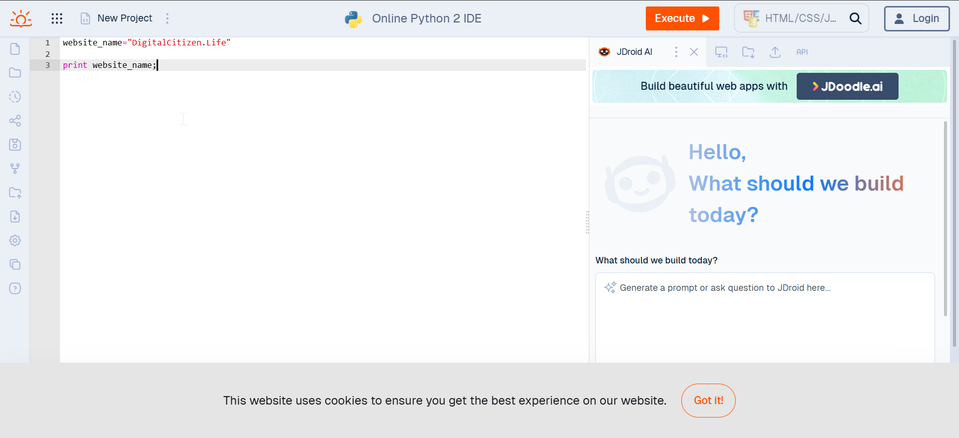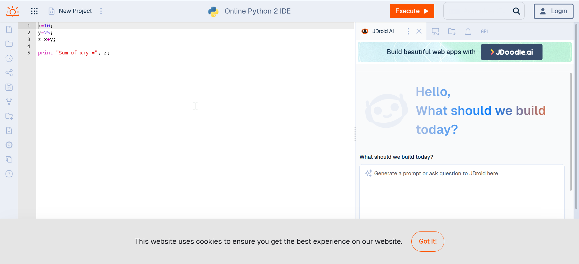 โปรแกรมขนาดสั้นนี้สร้างตัวแปรชื่อ name ที่เก็บข้อมูลอินพุตของผู้ใช้ จากนั้นจะแสดงเป็นคำทักทาย เป็นวิธีง่ายๆ ในการแสดงให้เห็นว่าข้อมูลสามารถเคลื่อนย้ายผ่านโปรแกรมได้อย่างไร