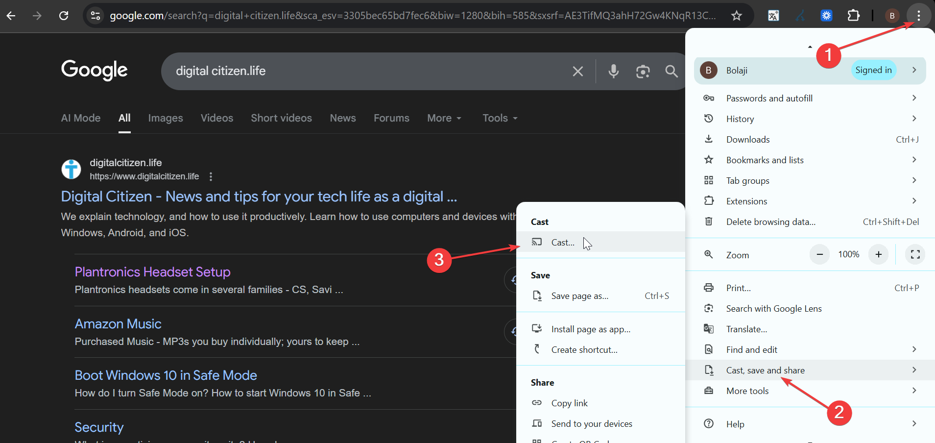 1) แคสต์แท็บ Chrome จากแล็ปท็อปของคุณ