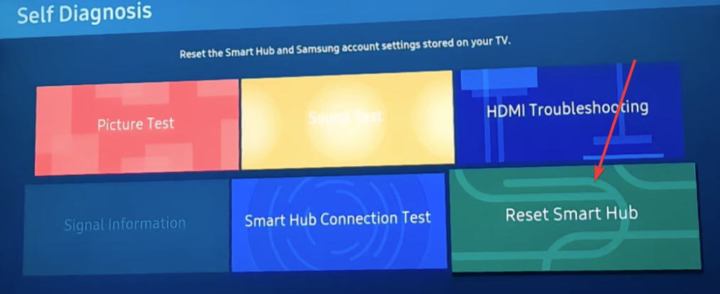 การรีเซ็ต Smart Hub จะล้างข้อบกพร่องที่ป้องกันไม่ให้แอปปรากฏขึ้น กดหน้าแรก จากนั้นไปที่การตั้งค่า > การสนับสนุน > การวินิจฉัยด้วยตนเอง > รีเซ็ต Smart Hub