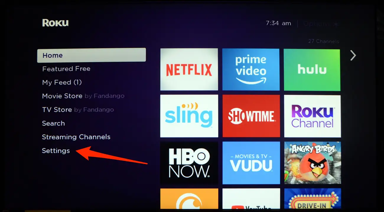 เปิด Roku แล้วกดปุ่ม”Home”บนรีโมท ไปที่เมนู”การตั้งค่า”