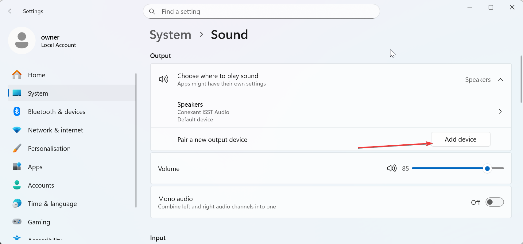 หลังจากเสียบชุดหูฟังแล้ว ให้กด Windows + I เพื่อเปิดการตั้งค่าและเลือกระบบในบานหน้าต่างด้านซ้าย ตอนนี้ เลือก เสียง และเลือกชุดหูฟังสำหรับทั้งเอาต์พุตและอินพุต เพื่อให้แน่ใจว่าแอปทั้งหมดจะส่งเสียงไปยังอุปกรณ์ที่ถูกต้องและบันทึกผ่านไมโครโฟนที่ถูกต้อง