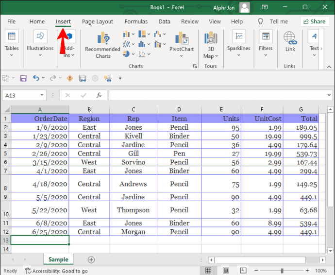 เปิดแอป “Excel”จากนั้นเปิดสเปรดชีตที่คุณต้องการฝังไฟล์ PDF ลงไป