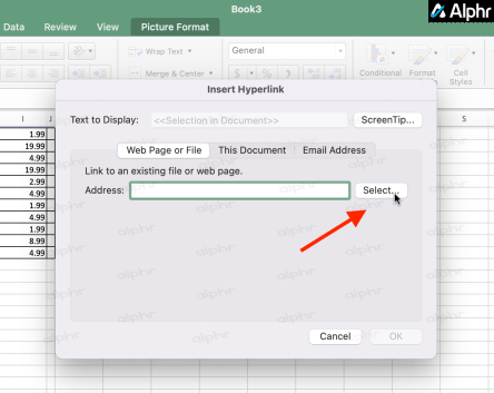 ค้นหาและเลือกไฟล์ PDF ที่คุณต้องการลิงก์กับภาพขนาดย่อในสเปรดชีต