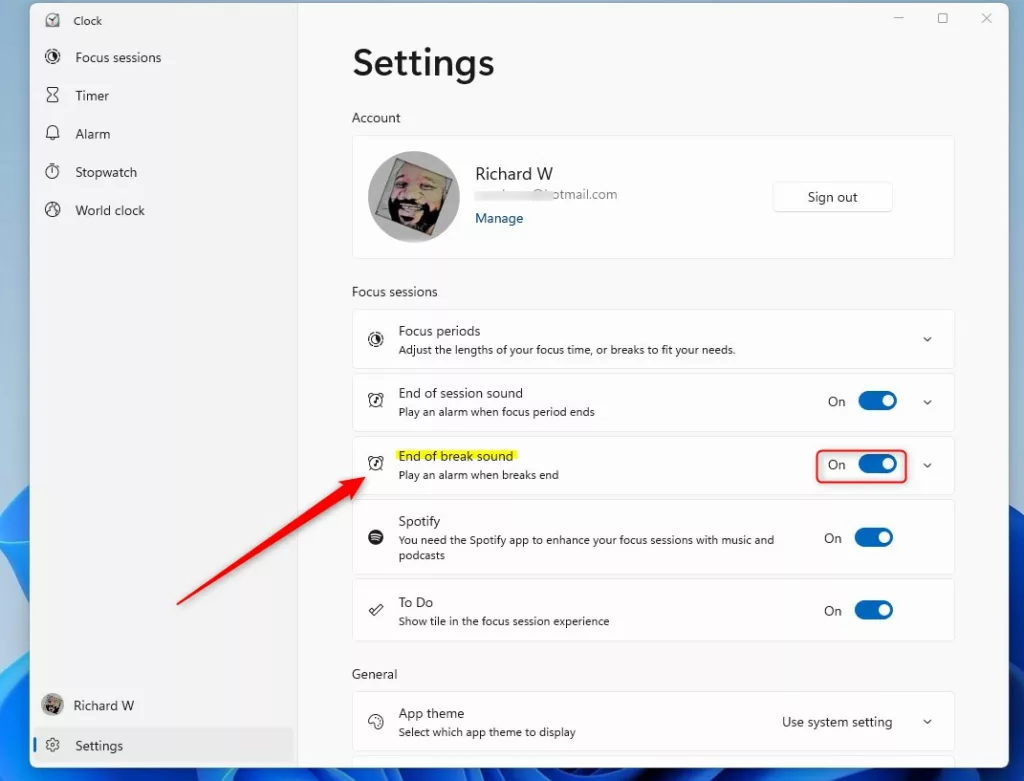 คุณสามารถปิดหรือเปิดคุณลักษณะนี้ในแอปนาฬิกาใน Windows 11