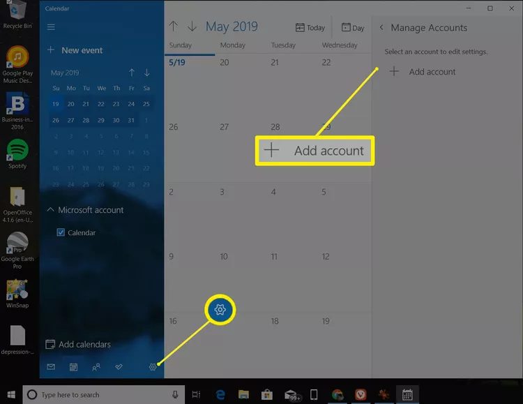 Piliin ang Pamahalaan ang Mga Account , piliin ang Magdagdag ng Account .