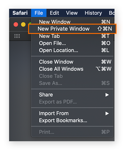 Pinagsasama nito ang built-in na proteksyon sa pagsubaybay sa isang malinis na pribadong sesyon. I-click ang file sa tuktok na menu bar, pagkatapos ay piliin ang bagong pribadong window . O pindutin ang shift + command + n upang buksan ang isa nang direkta.