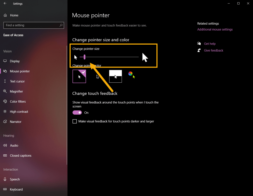 Dapat pumunta ang mga user ng Windows 10 sa page na “Ease of Access-> Mouse Pointer.”