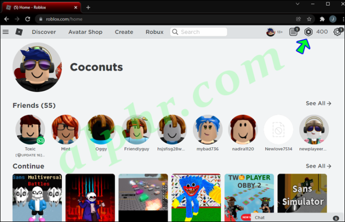 Nhấn vào biểu tượng Robux ở trên cùng-phần bên phải bên cạnh Biểu tượng bánh răng(Cài đặt).