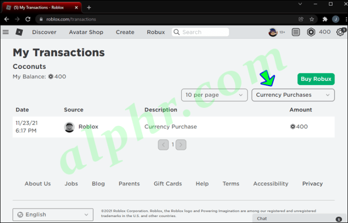 Dưới đây là cách duyệt các giao dịch mua Roblox của bạn trên máy tính: