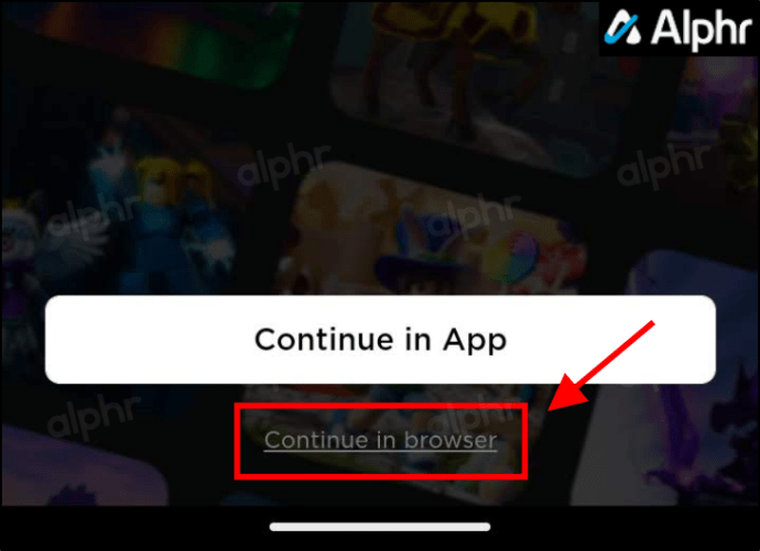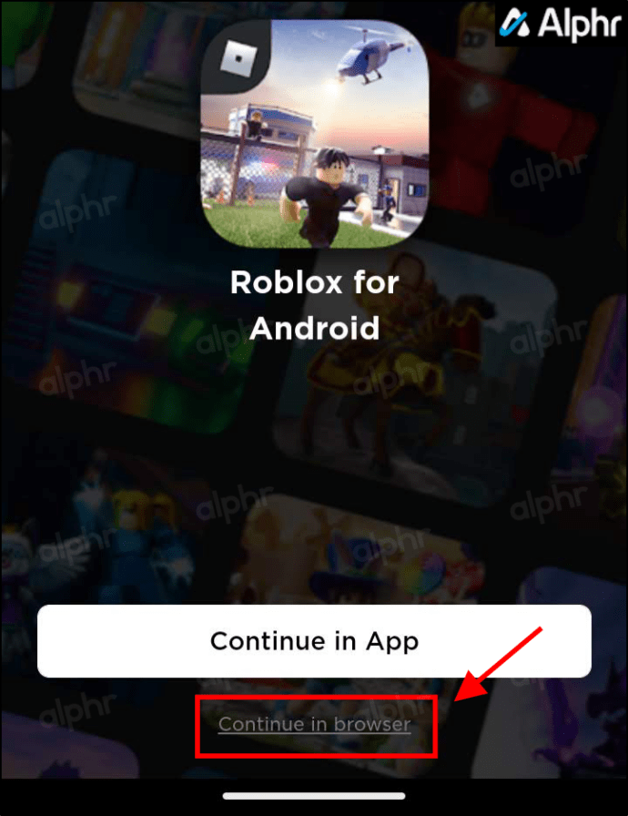 Nhấn và khởi chạy trình duyệt ưa thích của bạn trên thiết bị Android. Đi tới trang web Roblox chính thức và chọn Tiếp tục trong trình duyệt ở cuối màn hình.