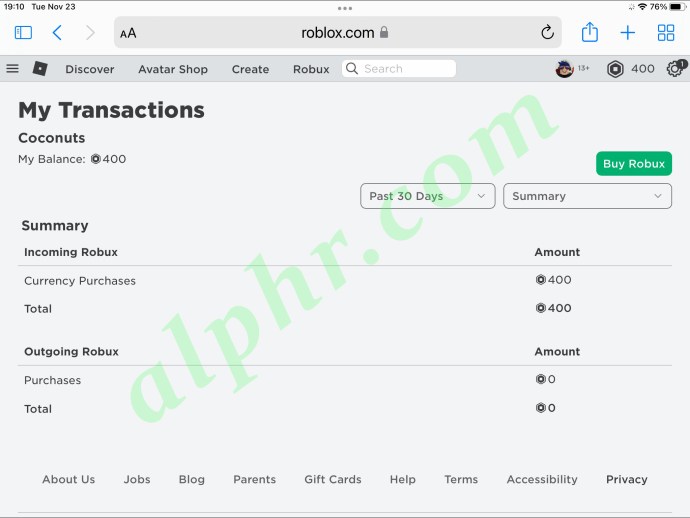 Mặc dù bạn có thể mua Robux trong trò chơi, nhưng việc kiểm tra các giao dịch mua trước đây của bạn chỉ có thể thực hiện được bên ngoài trò chơi. Bây giờ bạn đã biết hạn chế này, bạn có thể lấy iPad của mình và bắt đầu.