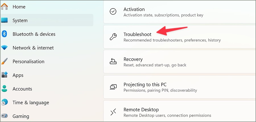 2. Đi tới Hệ thống và mở menu Khắc phục sự cố.