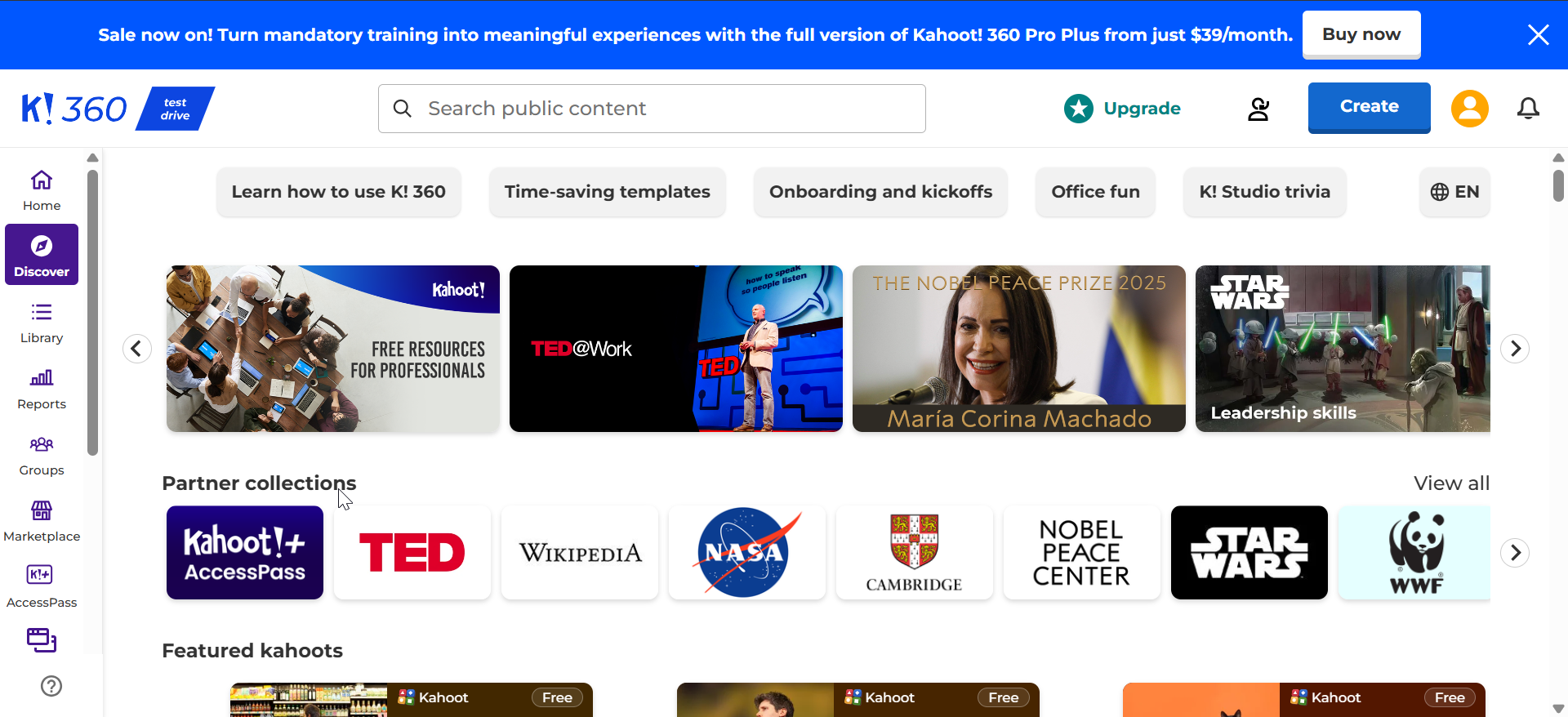 Nandom Kahoots là trò chơi công khai được chia sẻ bởi giáo viên, người phát trực tiếp hoặc người hâm mộ câu đố. Bạn có thể tìm thấy chúng trên các nền tảng khác nhau hoặc bằng cách khám phá phần Khám phá. Sau đây là một số cách tìm trò chơi Kahoot ngẫu nhiên để tham gia: