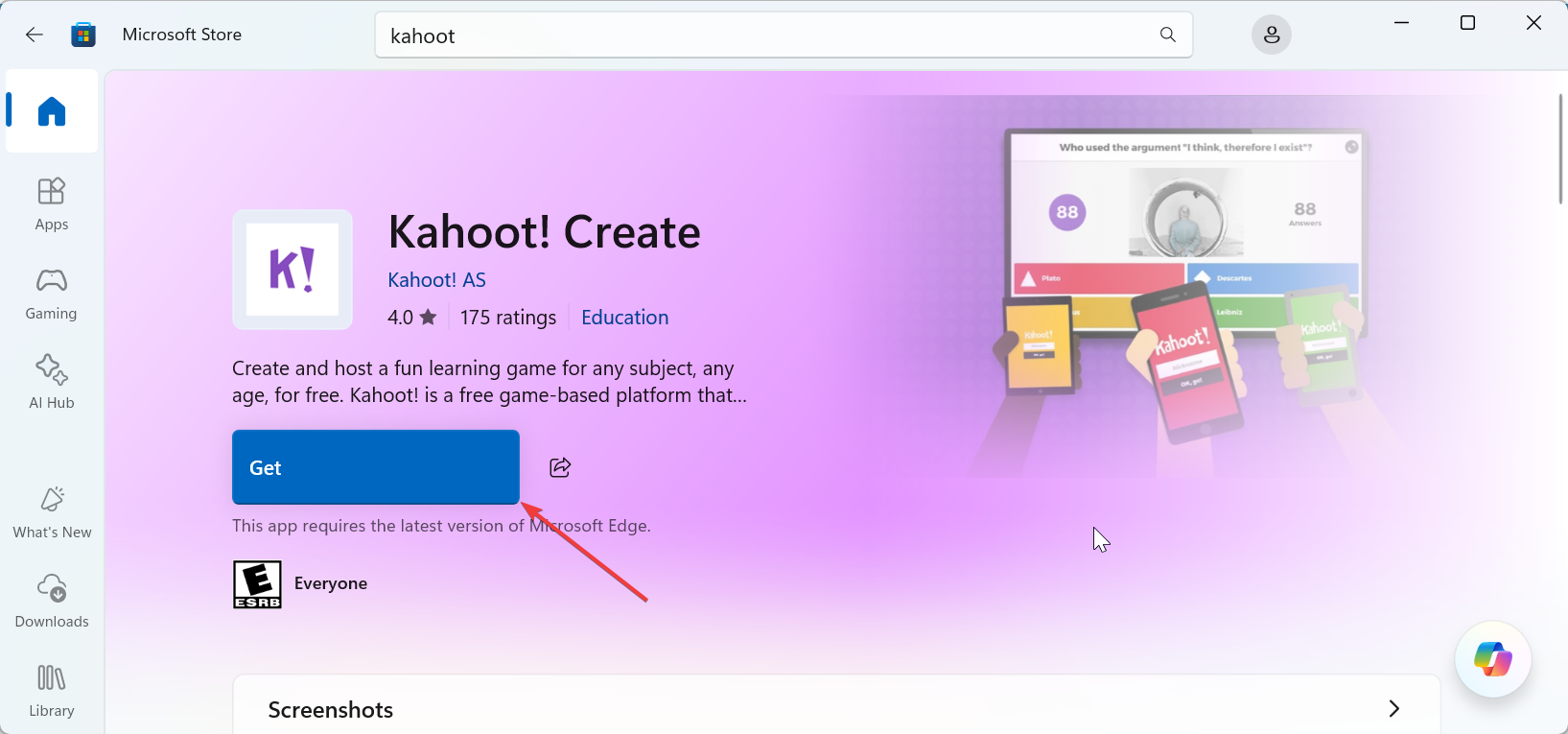 Cài đặt ứng dụng Kahoot từ Microsoft Store, Google Play hoặc App Store. Ứng dụng giúp bạn tham gia trò chơi Kahoot dễ dàng hơn bằng cách nhập mã PIN trò chơi, phản hồi nhanh chóng và xem bảng xếp hạng trực tiếp.