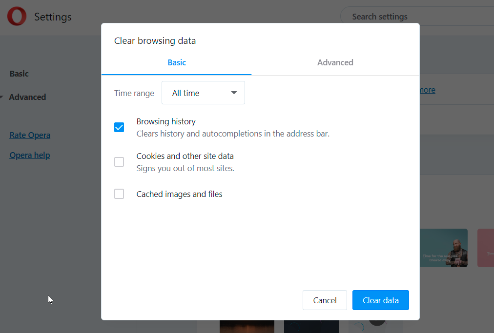 Bước 5: Xóa lịch sử trình duyệt trên Opera
